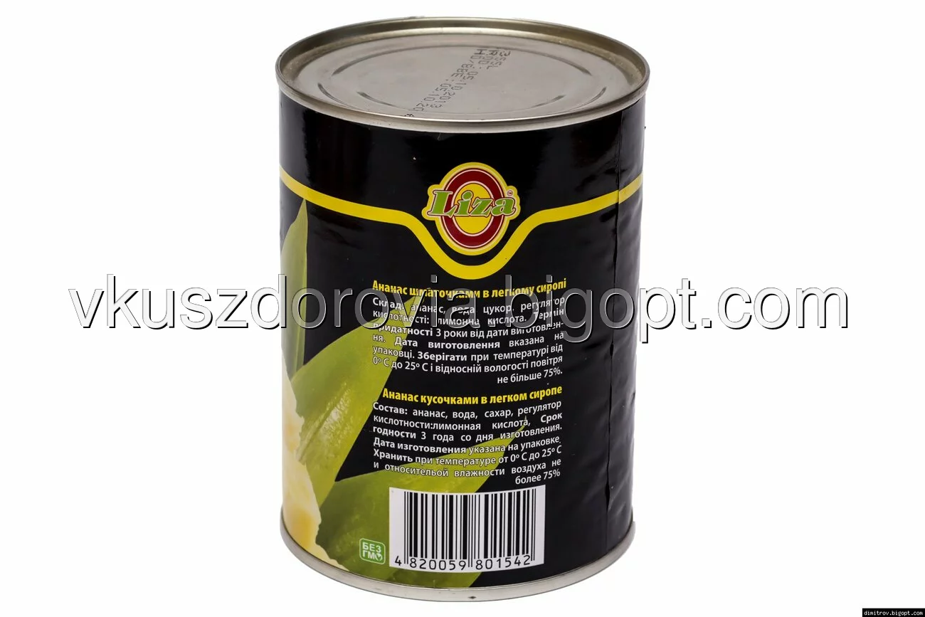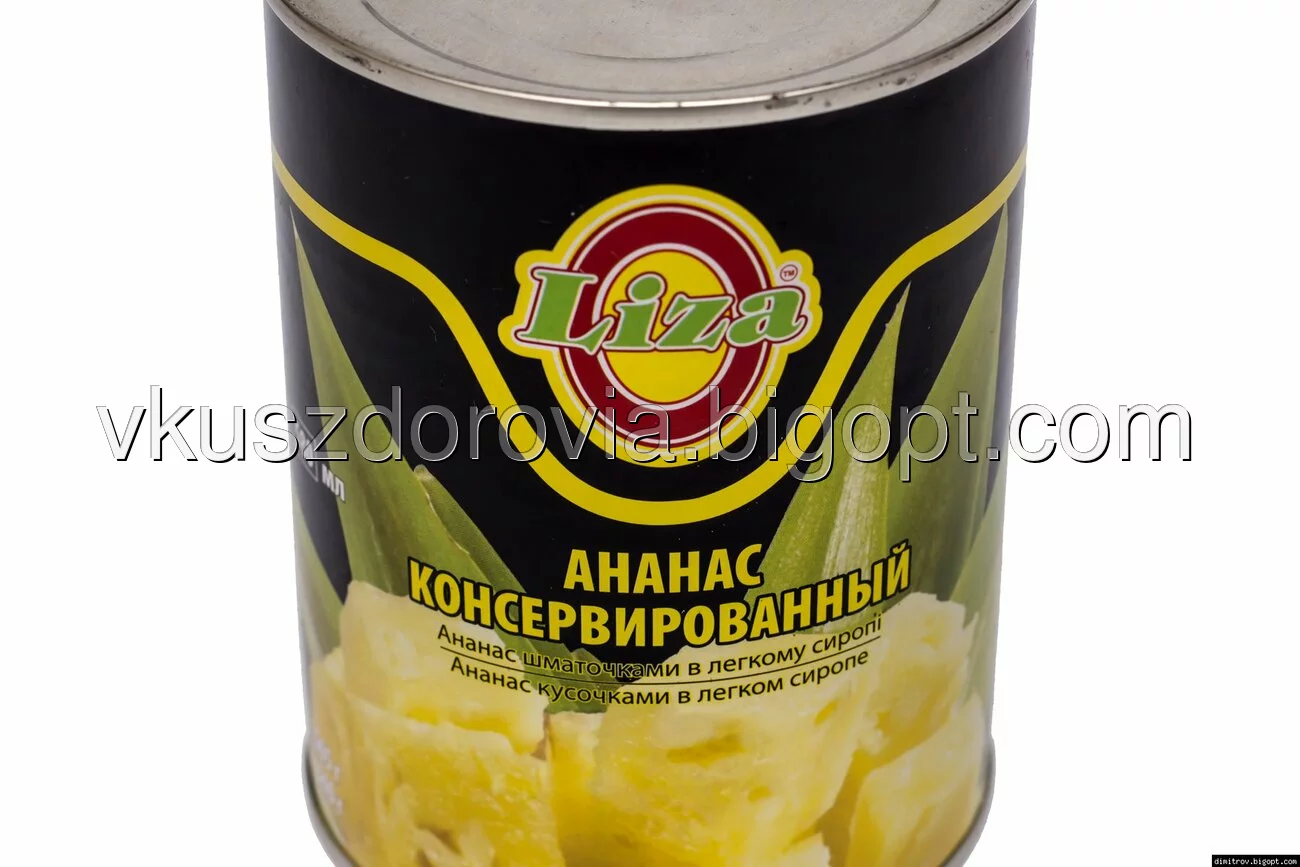 Ананас ТМ "Liza", консервированный кольцами в легком сиропе.