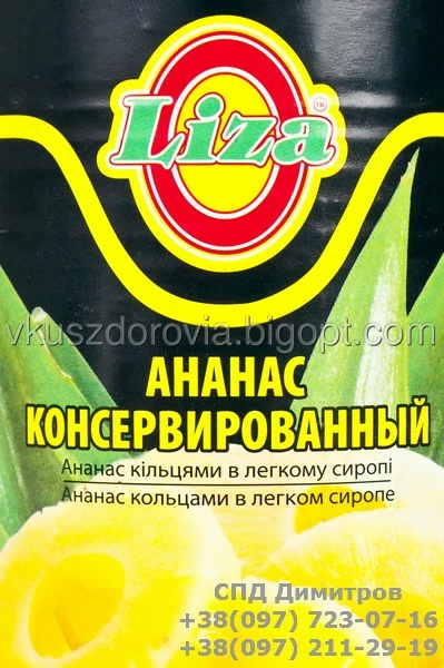 Ананас ТМ Liza, консервированый кольцами в легком сиропе.