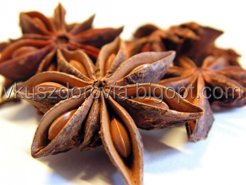 Бадьян (lllicum verum) - дальний родственник магнолии. Аромат бадьяна похож на на аромат аниса, только посильнее. Чаще всего эту пряность асоциируют со сладкими блюдами и шоколадом. Семена бадьяна имеют красивую форму звездочки с блестящими семечками внутри лучиков.